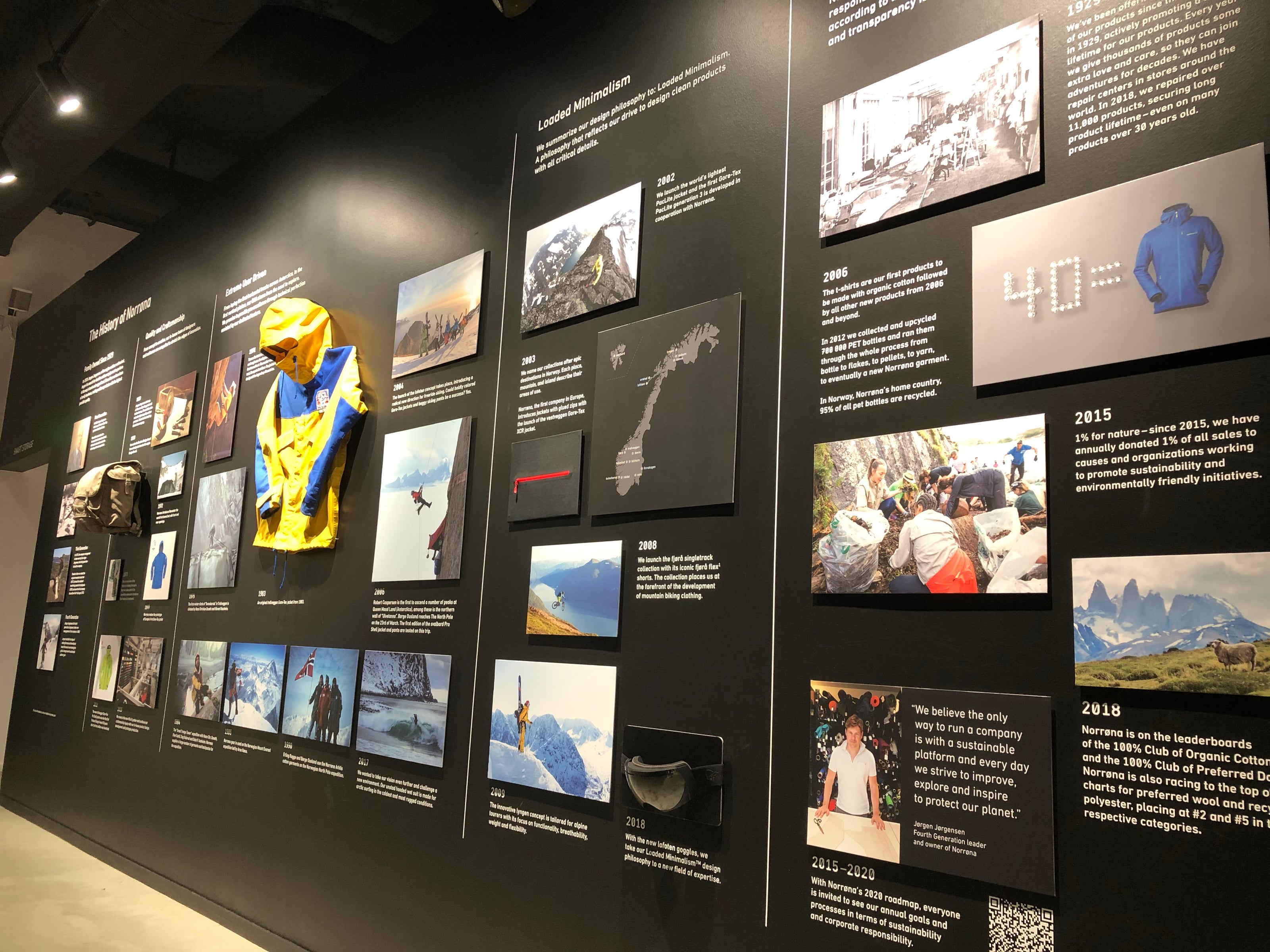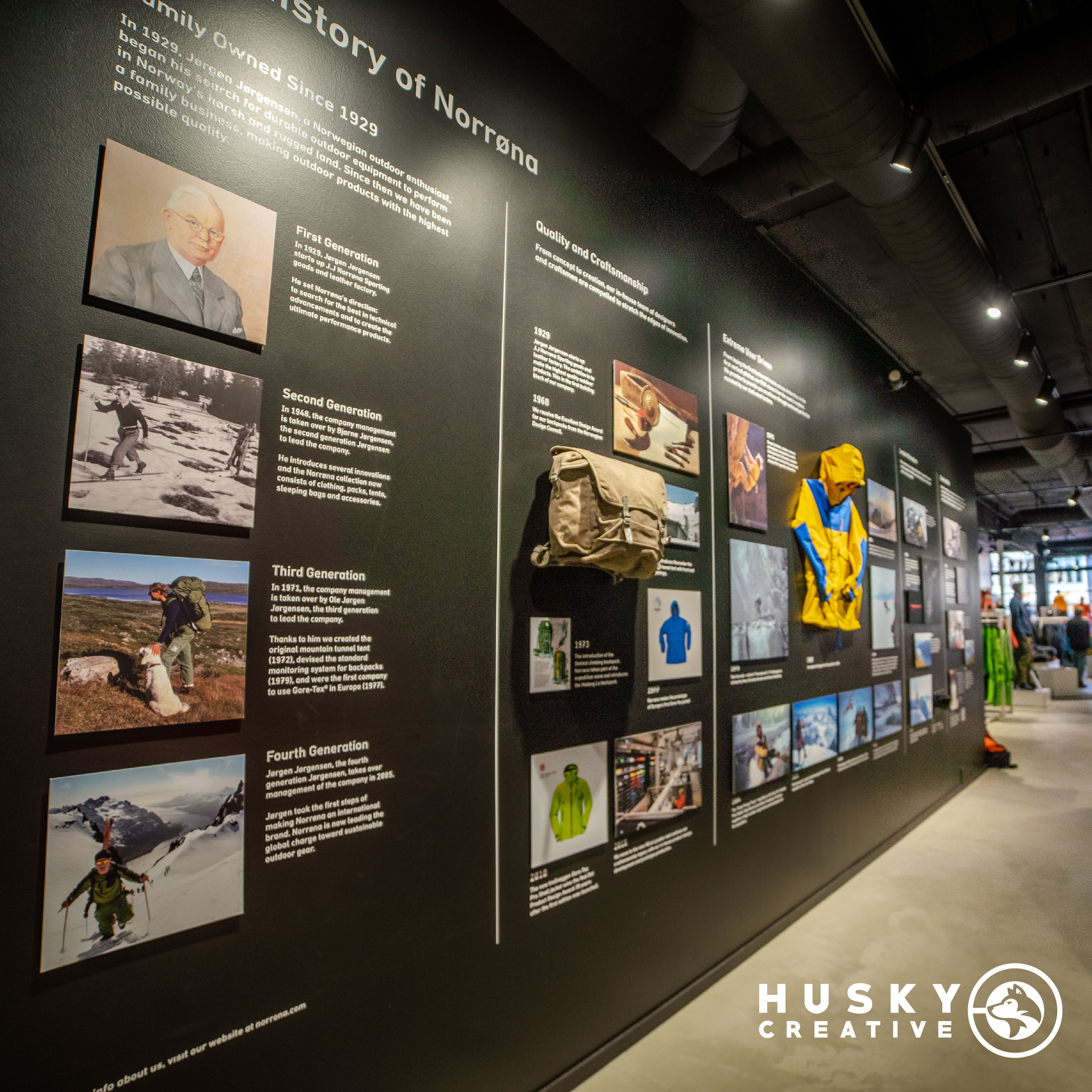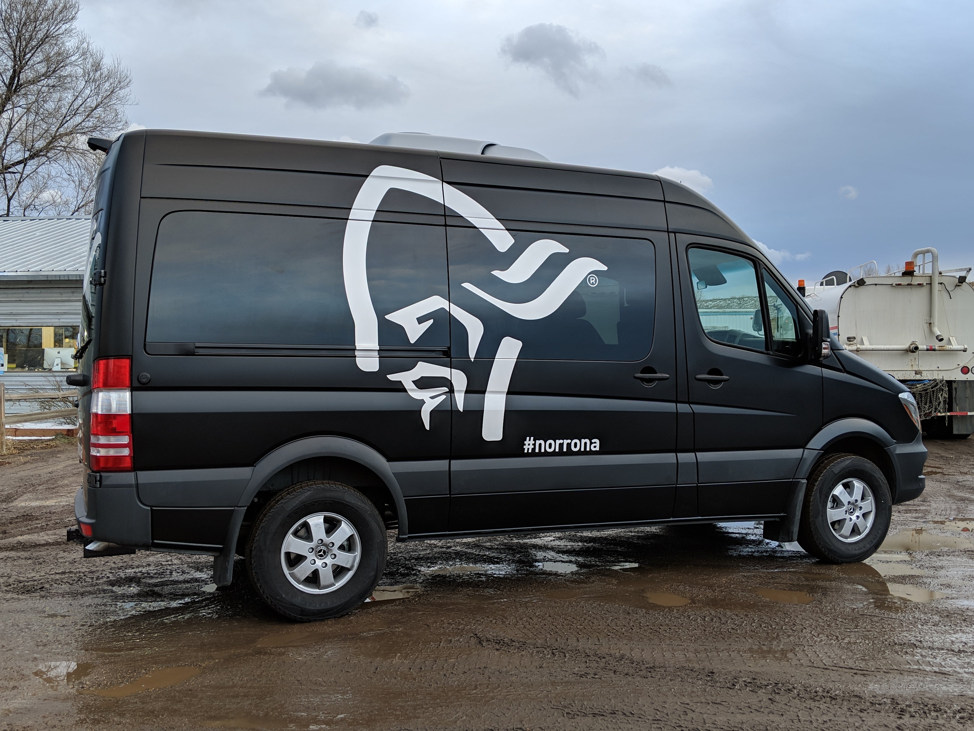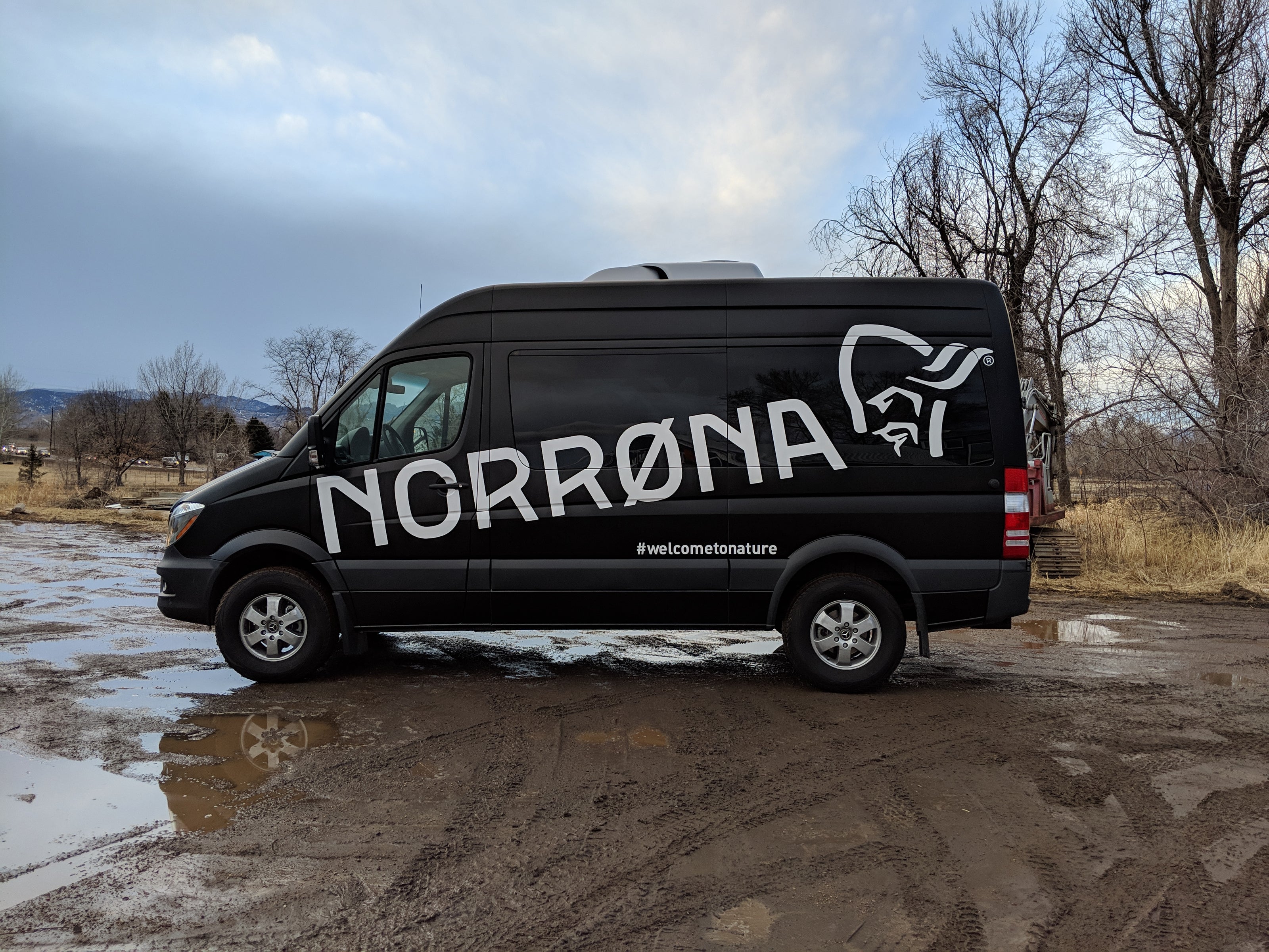 A Norwegian company, Norrøna has been a leader in premium outdoor products and clothing since 1929. When they decided to open their first U.S. flagship retail store in Boulder, CO, they entrusted Husky Signs to create, print, and install a store-wide signage program. The interior store signage consisted of multiple full wall wraps, a History Wall that utilized vinyl signage along with real historical and modern products, and many product-area identifying signs. The success of this interior program led to Husky Signs being asked to complete their exterior sign and, eventually, a simple but very powerful full wrap on their sprinter van.