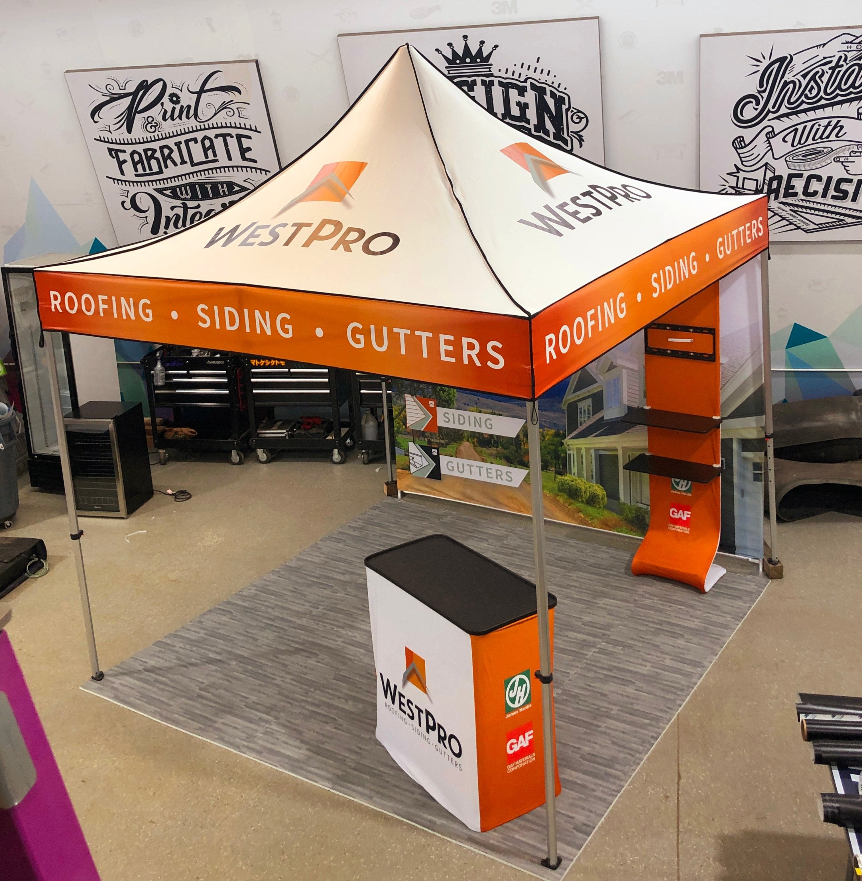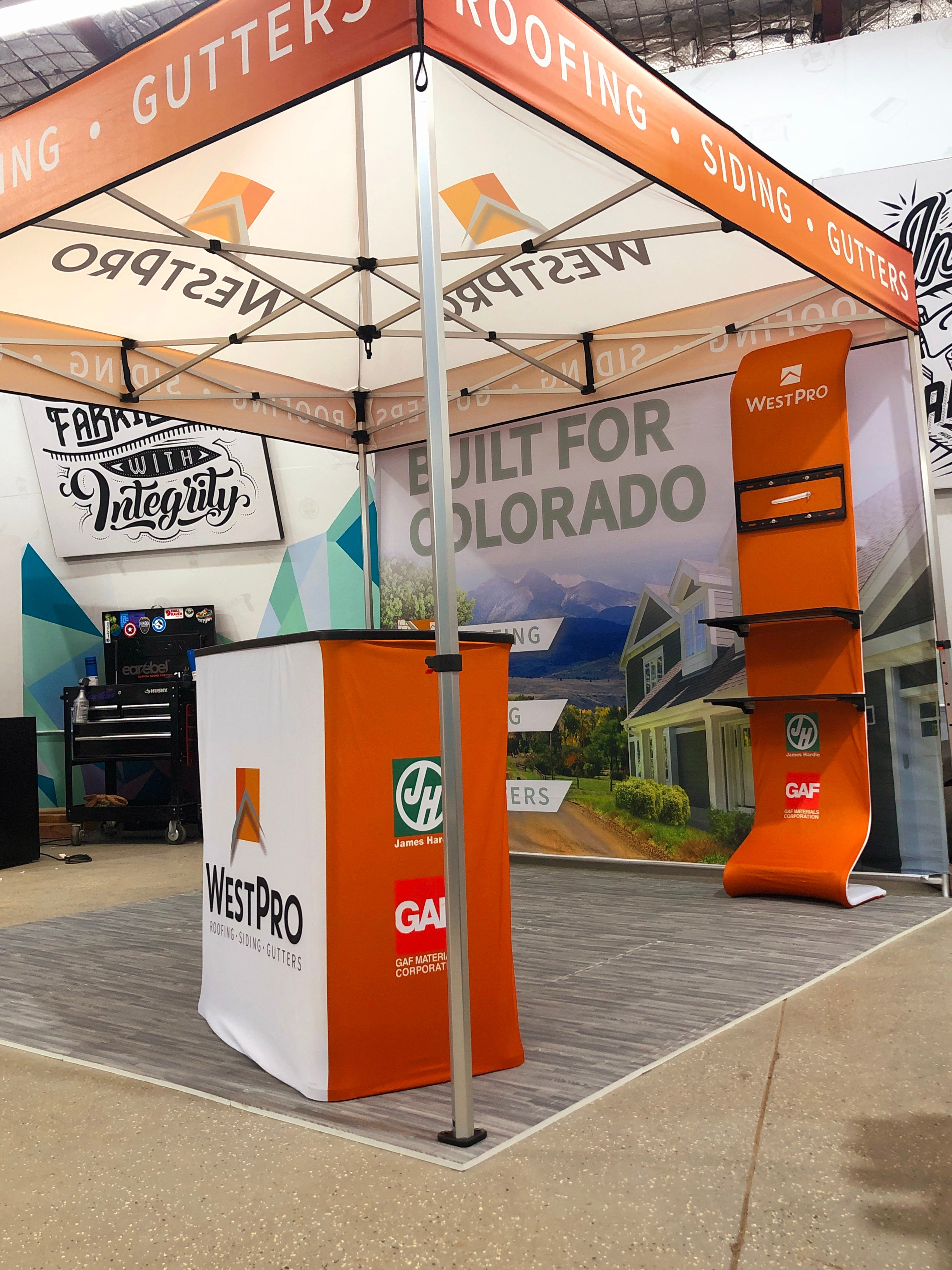 A relatively young company, WestPro Home Exteriors has grown drastically and gained impressive market share by providing high-quality, high-value solutions for home exteriors. Since their founding, WestPro has leaned on Husky Signs for their sales vehicle spot graphics, fleet partial wraps, exterior wall signs, post and panel signs, as well as event tent display booths.